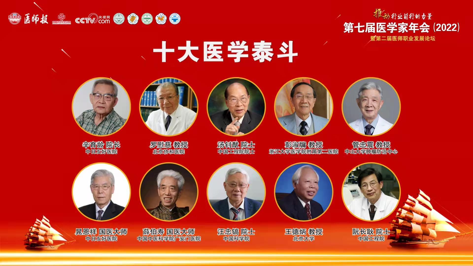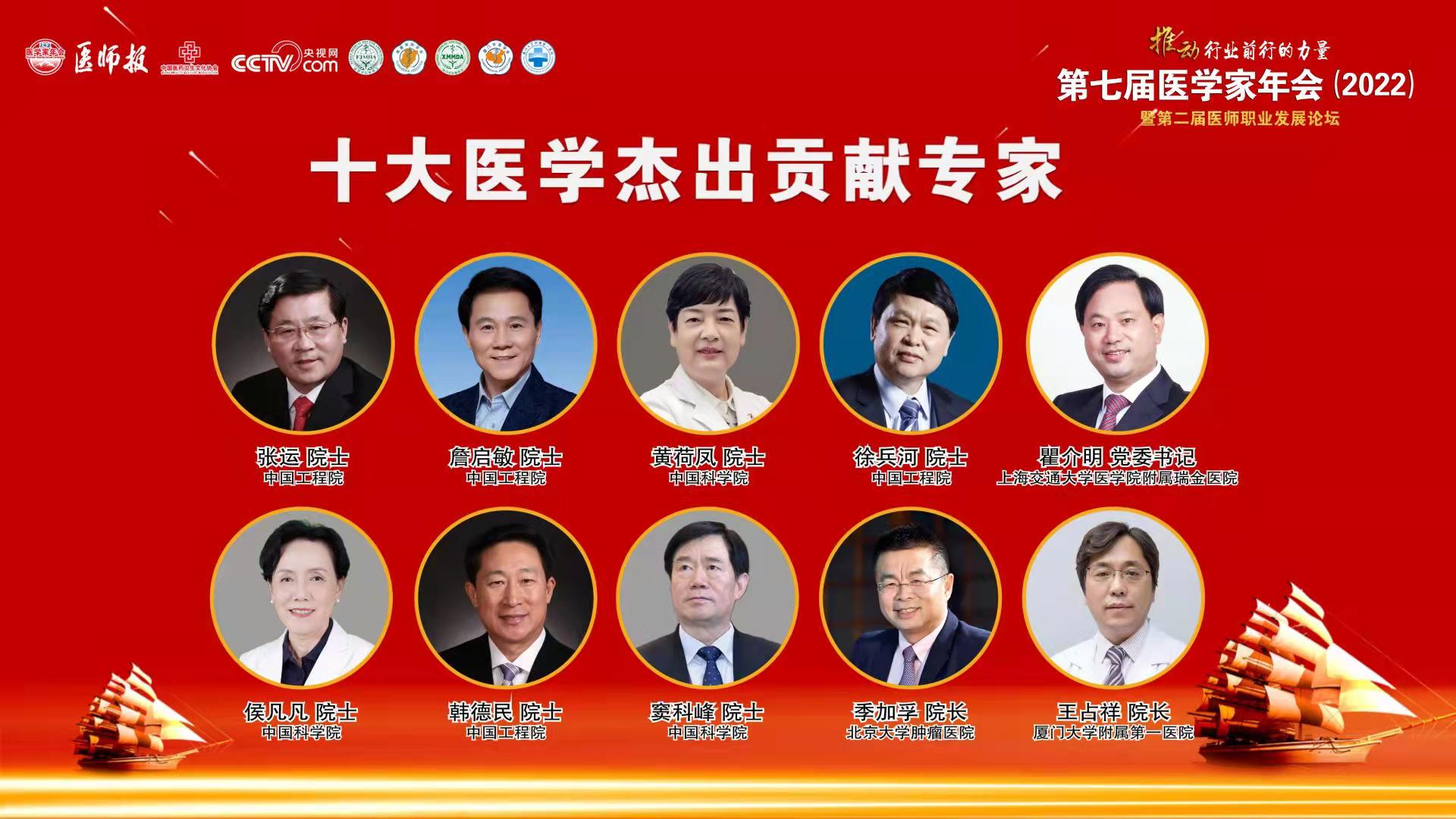 3月18日,由医师报社、中国医药卫生文化协会、央视网、福建省医师协会、福建省医学会、厦门市医师协会、厦门市医学会、厦门大学附属第一医院等主办的第七届医学家年会(2022)暨第二届医师职业发展论坛隆重召开。大会对医疗领域作出突出贡献的专家、学者给予表彰,国重室阮长耿院士荣获“十大医学泰斗”称号,学委会主任詹启敏院士荣获“十大医学杰出贡献专家”称号。