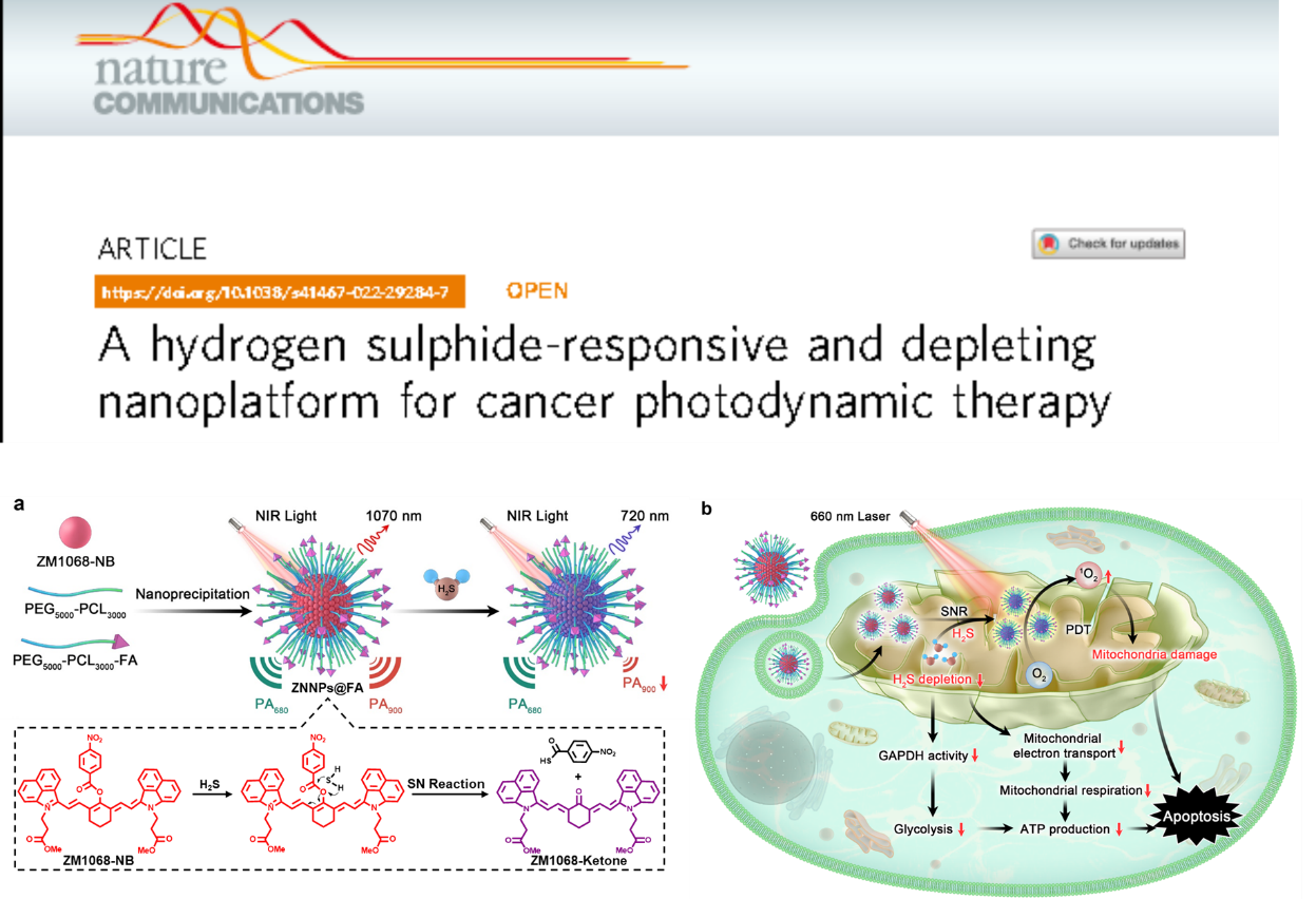 放射医学与辐射防护国家重点实验室、放射医学与防护学院史海斌教授课题组在活体H2S精准定量及结肠癌肿瘤高效治疗方面取得新进展,相关成果以“A Hydrogen Sulphide-Responsive and Depleting Nanoplatform for Cancer Photodynamic Therapy”为题于2022年3月30日在线发表在国际知名杂志Nature Communications上,论文链接:https://www.nature.com/articles/s41467-022-29284-7。