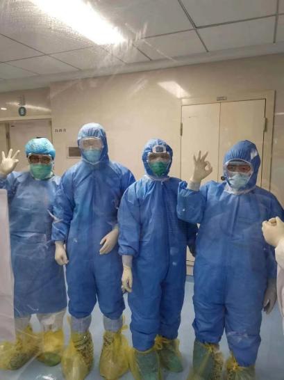2月15日。昨天14:30从宾馆出发,到达医院后穿好防护服进入隔离区已是16:00。多层的口罩、鞋套、防护服,让我不太敢大声说话,活动幅度稍微大一些就会感到有些憋气。我们组的五位队员在六个小时内接诊了36名患者。对每一位患者我们都要进行各项评估和采集信息,还要发口服药、做治疗、监测生命体征,我们的配合很快就默契起来,累了大家就相互击掌鼓励。等到下一班次准备就绪交接完毕时已是23:00。回到宾馆,匆匆吃了几口晚饭已是凌晨。打开手机,看到的都是领导、同事和家人们满满的关心,我的心里倍感温暖。