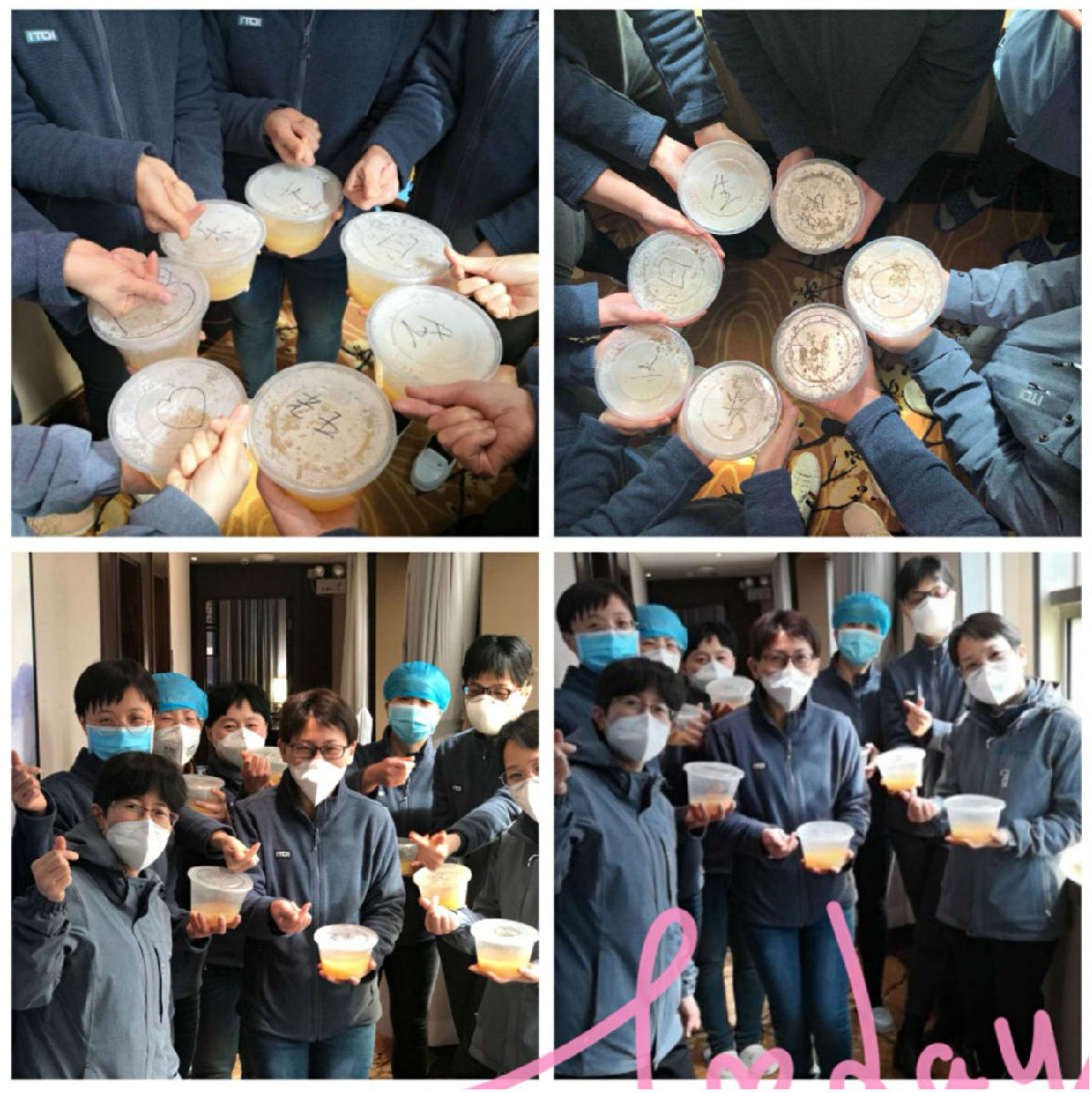 今天是“老五”葛胜燕的生日,“家人们”给她过了一个特殊的生日。没有蛋糕,饭盒来凑,“四姐”孔荣华护士长把橘子摆成了心形,我用巧克力做了个爱心......。医院将生日蛋糕送到了她家中,“老五”说这是她过的最有意义的一个生日。“二姐”张丽护士长说,让我们珍惜这难忘的日子,众志成城、战胜疫情!