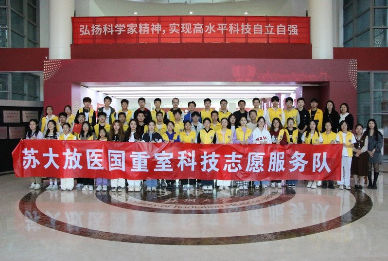2023 年,成立苏大放医国重室科技志愿服务队,由院士领衔,包括杰青、优青等高层次人才主导、大学生参与的100 余人科普志愿者。团队坚持科研科普两翼齐飞。突出“与核同行”,通过科学讲核、竞赛知核、艺术演核等多种形式把成果科普化。紧扣热点如福岛排放核污水积极开展核科学传播,在中国科协《科学家讲科学》、人民网、央视《新闻调查》开展有关核科普。团队坚持以医报国、以核报国。团队面向中小学生开发融合讲、研、创、习为一体科普课堂,以前沿成果激发和吸引青少年的好奇心,为助力双减作贡献。团队强化科普人才培养。选送辅导大学生参加科普作品竞赛,获省部级以上奖23 项。参加“魅力之光” 全国核科普讲解员大赛等,获省部级奖7 项。