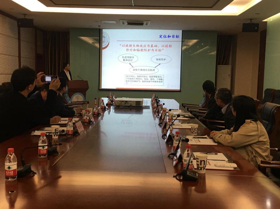 曹建平常务副院长代表苏大放医对南阳市第一人民医院鲁培副院长一行表示热烈欢迎。华道本教授从国重室的历史沿革、人才团队、平台建设、科研成果、合作交流、产业化及社会服务等向客人做了介绍。鲁培副院长也向大家介绍了南阳市第一人民医院的临床及科研工作。