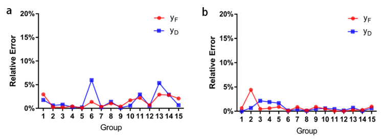 课题组基于已获得的液态水中不同能量低能电子(0.1 keV-10 keV)在不同位点直径(1 nm-2000 nm)下的和数据库,提出利用MEA优化的BP神经网络进行y-F和y-D预测模型构建的方法,并对该模型对单能电子和谱分布电子的预测效果进行评估。图1示出了微剂量学指标与前人结果的比对;图2示出了神经网络预测误差。