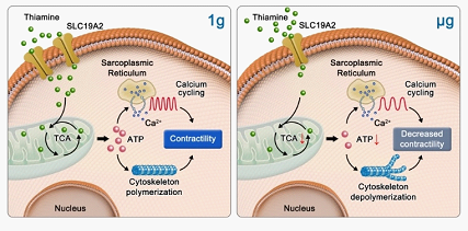 针对这一难题,合作团队潜心研究,不断完善细胞培养模式,优化培养条件,从环试模飞、在轨处理到样本长期保存等多环节条件成功实现天基适配,建立了稳定的天基实验模型。实验发现微重力可造成人心肌细胞搏动频率显著降低,出现钙循环异常。代谢组学和转录组学交互分析显示,太空飞行期间心肌细胞存在代谢重塑现象,尤其是硫胺素代谢。微重力阻断了心肌细胞对硫胺素的摄取,进而影响了三羧酸循环效率,降低了ATP产生,并进一步造成细胞骨架重塑和钙稳态失衡。通过补充硫胺素可以达到改善心肌细胞结构和心脏功能的效果,提示长期飞行中需关注硫胺素在心血管系统防护中的作用。