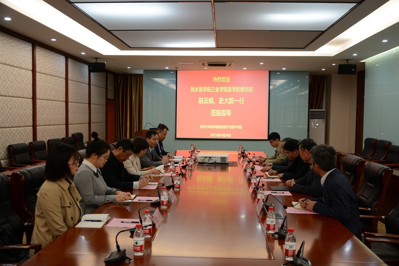 2021年4月9日上午,新乡医学院三全学院医学影像学院赵云娟书记、史大鹏院长一行来学院考察放射医学专业建设,交流会在医学楼402栋一楼会议室举行,参加交流的有新乡医学院三全学院医学影像学院赵云娟书记、史大鹏院长一行6人,学院执行院长高明远、党委书记王成奎、常务副院长曹建平、副院长周光明、院长助理俞家华等,会议由高明远主持。