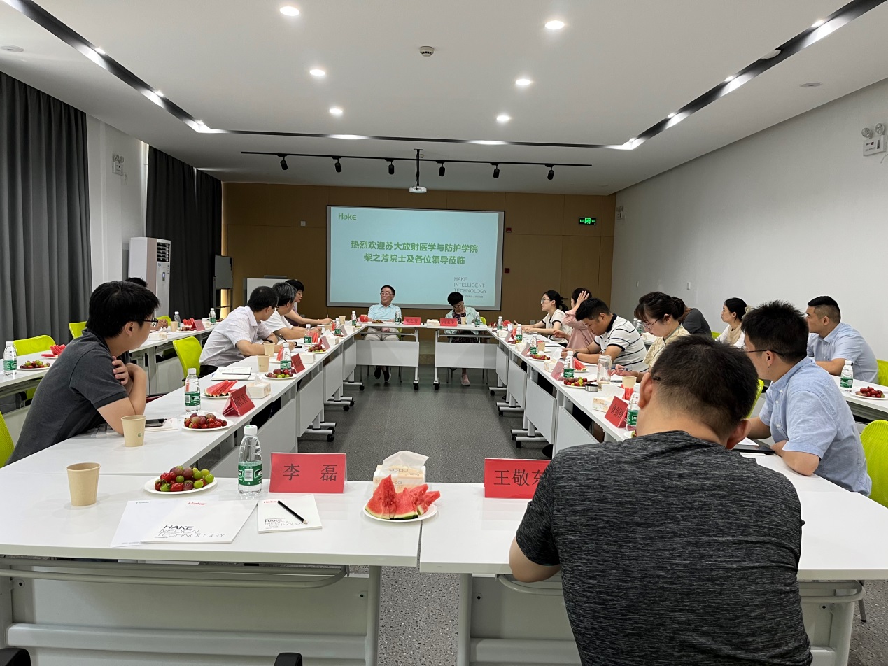 2022年8月11日,苏州大学放射医学与辐射防护国家重点实验室主任、放射医学与防护学院院长柴之芳院士一行赴华克医疗的全资子公司—华克智能科技(昆山)有限公司进行参观考察。昆山市科技局副局长马丽、昆山市巴城镇副镇长刘莎莎、巴城镇财政和经济发展局副局长石媛倩等领导也一并前往考察并参与交流讨论。华克医疗董事长刘爱娣、业务发展总监张磊、李春林教授等管理层陪同接待。