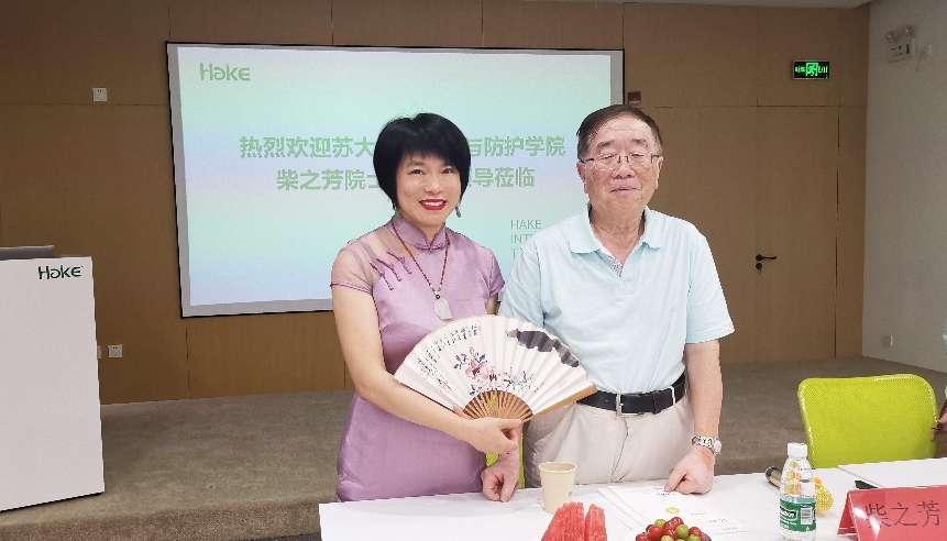 柴院士一行参观了华克智能科技(昆山)有限公司的核医学科普体验馆、生产车间及生产厂房,并对华克智能昆山生产基地的建设规划给予了高度的肯定。详细了解了华克智能在昆山的发展目标及规划,并提出了双方的未来可合作的方向。在交流讨会结束之际,柴院士向刘爱娣董事长赠送了精美的折扇工艺品,对华克医疗长期以来对苏州大学放射医学的大力支持表示衷心的感谢。