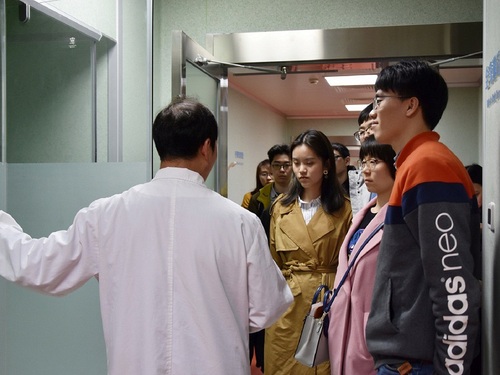 为了更好地了解核与辐射相关的知识,启动会结束后,苏大师生一同参观了上海市肺科医院。该院自2004年开始筹备核化的相关工作,逐年发展,现有核化队伍将近70人,该队伍同时承担了上海周边的核污染处理及救治工作。肺科医院医生对于人员体表放射性核素污染检测流程的讲解细致而全面,这使同学们对核污染的检测及救治也有了进一步的了解。