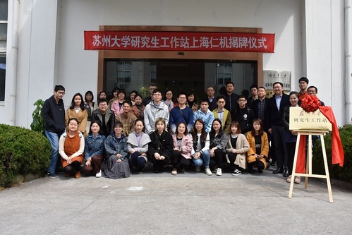 启动会正式开始前,上海仁机董事长李敬磊及苏州大学医学部放射医学与防护学院党委书记曹建平老师为苏州大学研究生工作站揭牌,双方均表示希望建立起公司与学校的长期合作关系,共同促进人才培养,随后苏州大学的到访师生与公司工作人员进行了合影。