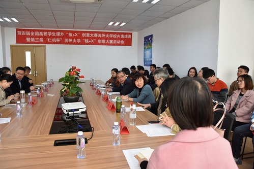 2019年4月2日上午,第四届全国高校学生课外创意大赛“核+X”苏州大学校内选拔赛暨第三届“仁机杯”苏州大学“核+X”创意大赛启动会在上海仁机仪器仪表有限公司隆重举行。出席此次活动的领导和嘉宾有中国辐射防护学会秘书处副处长牛玉娟女士、中国辐射防护学会秘书处阎信女士、苏州大学医学部党工委副书记黎春虹老师、医学部放射医学与防护学院党委书记曹建平老师、放射医学与辐射防护国家重点实验室综合办公室主任徐加英副教授、医学部放射医学与防护学院涂彧教授、医学部学工办刘璐老师、医学部放射医学与防护学院王杨云老师、医学部放射医学与防护学院赵琳老师、医学部放射医学与防护学院闫思齐老师、上海仁机仪器仪表有限公司董事长李敬磊、总经理张志勇、郑翠,会议由上海仁机仪器仪表有限公司董事徐一鹤主持。参与本次活动的学生来自医学部放射医学与防护学院的研究生和本科生代表。