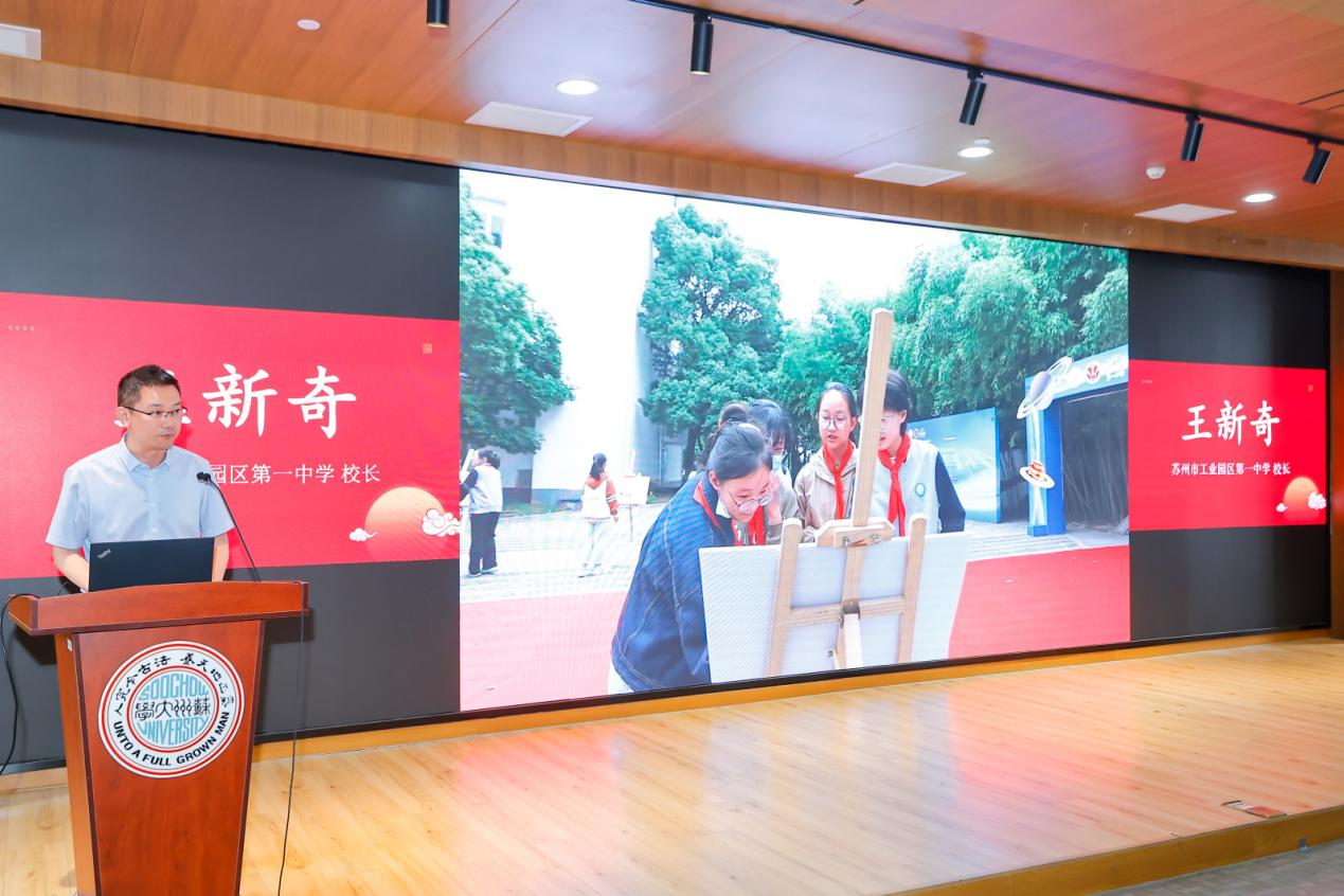 王新奇做了“核星筑梦”科普特色课程进校园特色活动分享报告,讲述了园区一中与国重室两年的科普合作与探索。他指出,这些尝试贯穿了学生们的所学所思所感,点燃了学生们对科学的热情。他表示,学校对与国重室未来的合作充满期待,相信在双方的努力下,会取得更丰硕的成果。