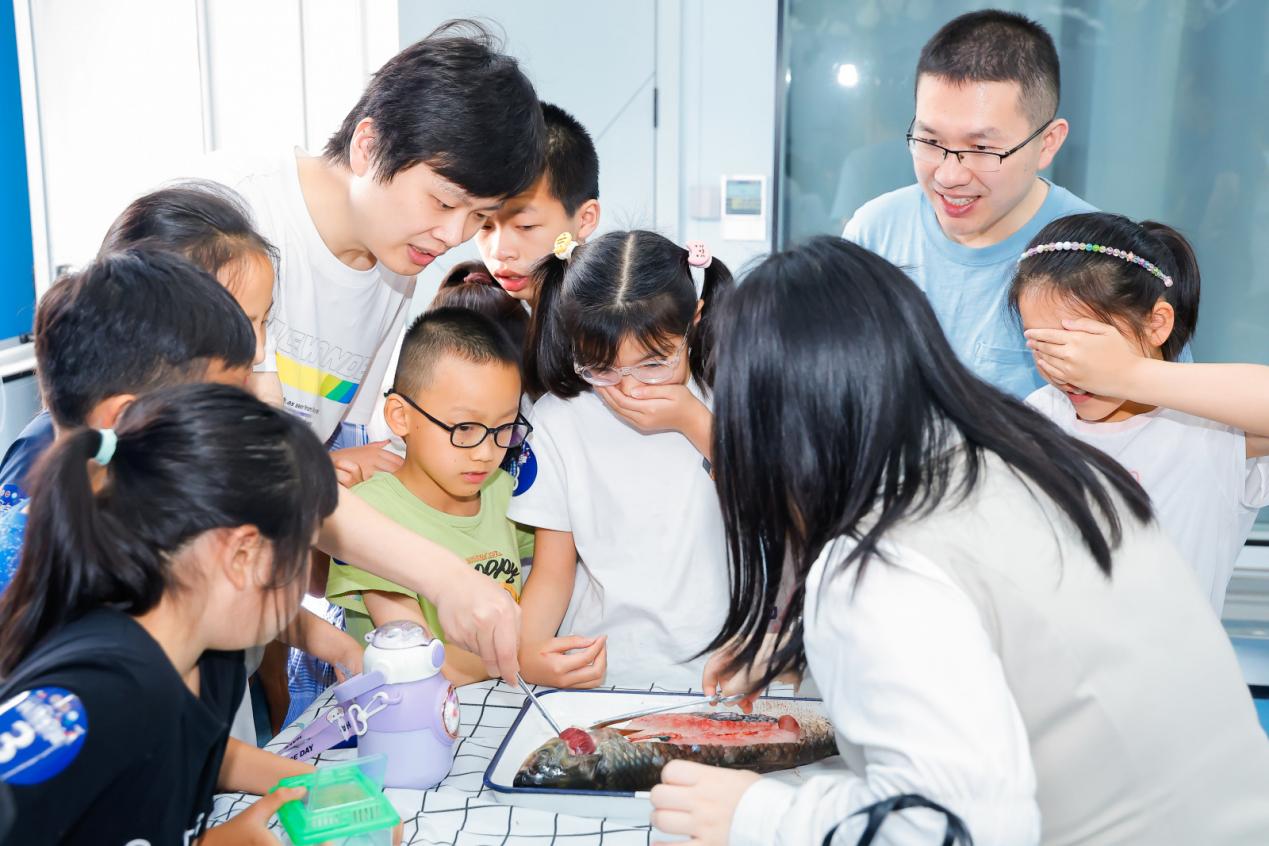 王子昱老师的“核污水和鱼类王国”以一段幽默的相声开场,讲解了核污水中铯-137对鱼类的污染,分享了古籍中有关鱼类的记载。课程中,他介绍了鱼类的几大家族、苏州本土鱼种等专业知识,向小朋友们展示了鱼的结构。通过这节课,同学们不仅学到了鱼类的基本知识,还丰富了历史知识。