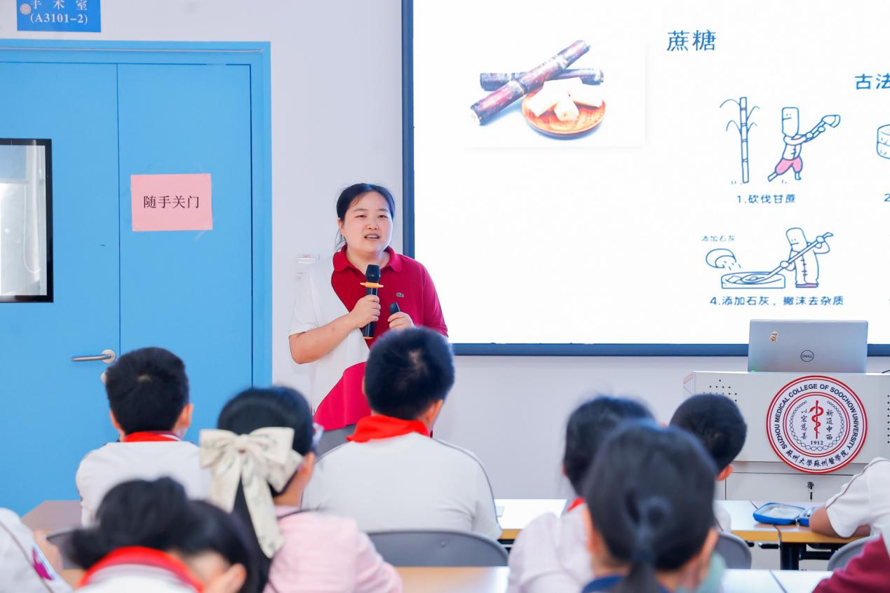 在“糖类杀手不太冷”课程中,马晓川老师以化学元素为起点,系统介绍了糖的分类,探讨了糖的益处与坏处、科学控制糖的摄入量、糖的来源等,借用模型帮助同学们了解糖的分子结构,介绍了“香菇多糖”“枸杞多糖”“黄芪多糖”的神奇辐射防护效果,带领大家一同探索糖类物质的神奇奥秘。