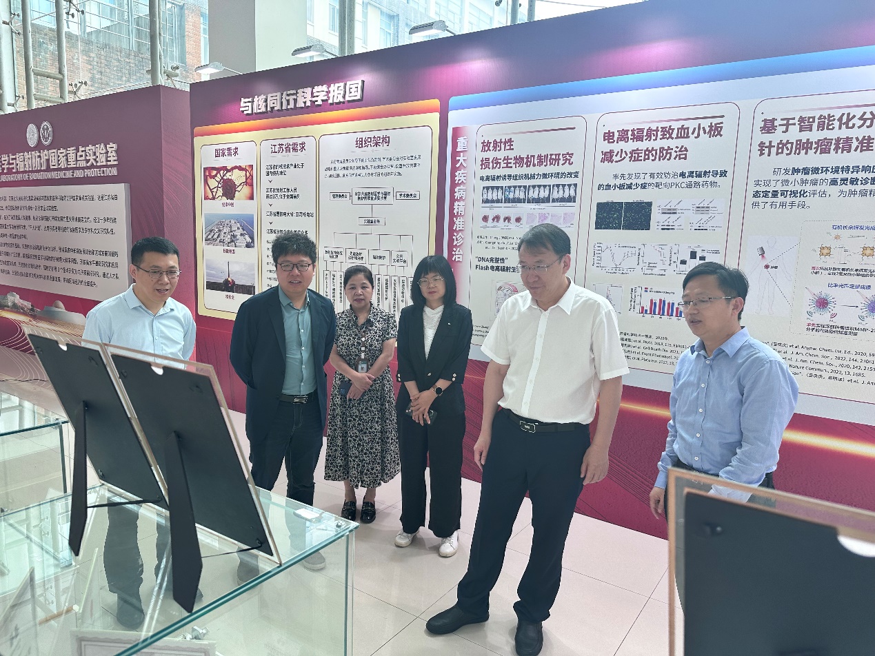 5月30日上午,中国原子能科学研究院总会计师陈赞一行来国重室调研交流,苏州大学附属第二医院赵经洲副院长、放射医学与辐射防护国家重点实验室临床中心主任助理肖莉陪同调研。放射医学与辐射防护国重室主任王殳凹,放射医学与防护学院副院长史海斌,国重室办公室主任徐加英等参加交流。