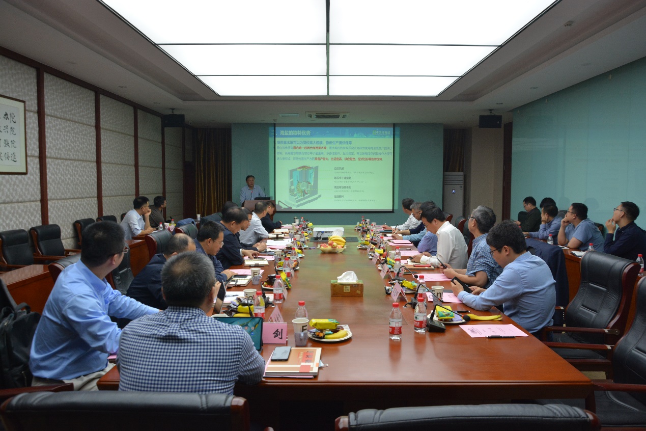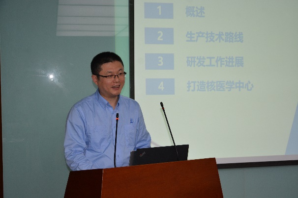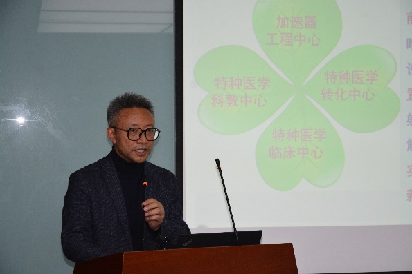 首先,周光明副院长介绍了以中能多粒子超导医学研究加速器为依托的特种医学国际研究院的建设设想,周光明从研究院四个中心的规划、加速器的先进性、必要性、落户海盐的可行性及优势做了较为详细的阐述。李世生处长介绍了秦山核电同位素生产研究情况,依托于核电站重水堆的优势,在同位素研发、生产上已经取得了大量的突破,目前正规划多种同位素的生产,并计划打造核医学中心。陈峰副主任介绍了海盐县核技术应用(同位素)产业建设情况,海盐县具有产业优势、交通优势,且与中核集团、秦山核电有良好的合作基础,目前正在打造核技术创新中心。
