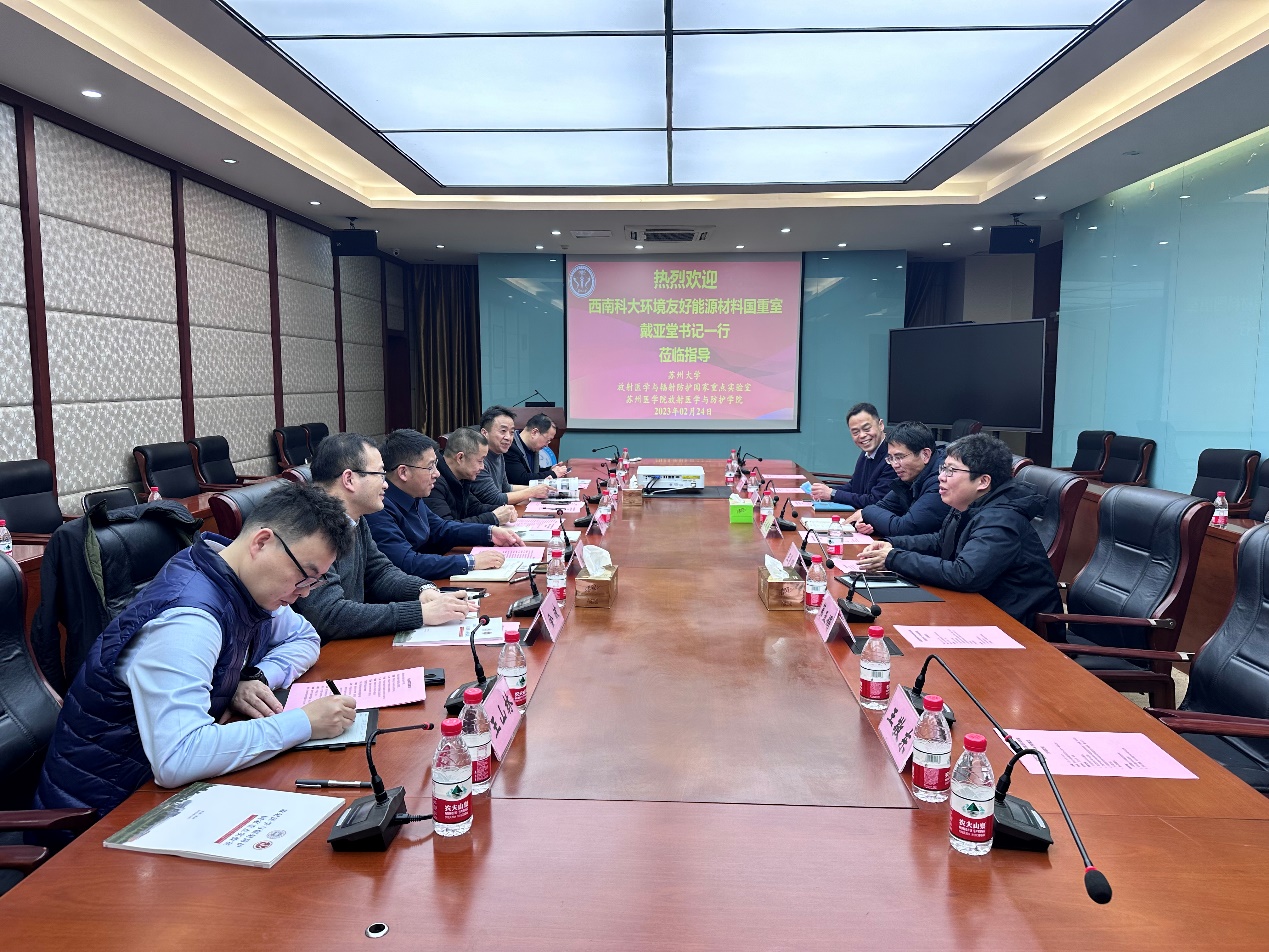 2月24日,西南科技大学环境友好能源材料国重室戴亚堂书记一行来访国重室。放射医学与防护学院党委书记王成奎,校先进技术研究处处长、国重室主任、学院副院长王殳凹,国重室副主任华道本,国重室放射性药物创新与转化中心主任助理第五娟和国重室办公室主任徐加英参加了调研交流。会议由王殳凹主持。