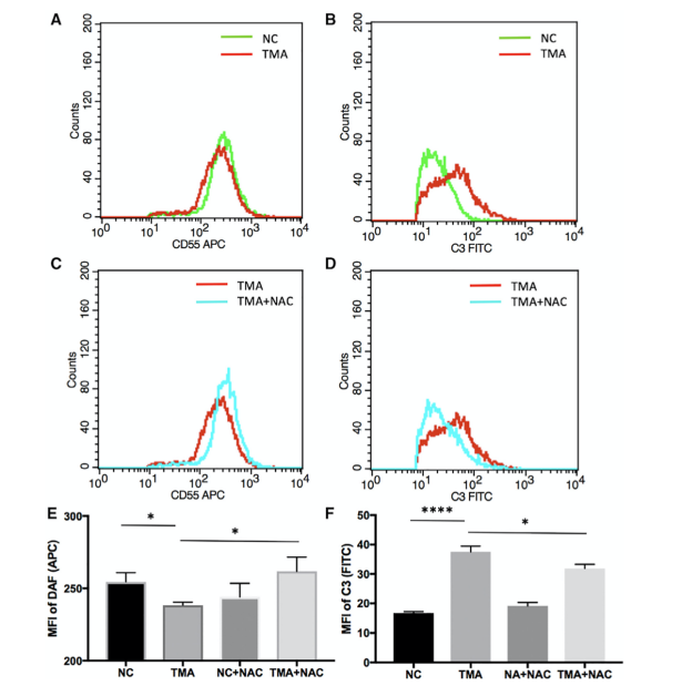Recently, Prof. Han‘s group from Jiangsu Institute of Hematology developed a heme oxygenase-1, which could induce decay-accelerating factor (DAF) and inhibit the membrane-attack complex, was significantly decreased in patients with TA-TMA. DAF levels in the TA-TMA group were in line with the levels in the myocardial infarction group but were lower than levels in the healthy, non-complication, infection, and graft-versus-host disease groups (P < 0.05). Human umbilical vein endothelial cells (HUVECs) incubated with TA-TMA plasma showed lower DAF levels compared with that incubated with normal human plasma. Notably, treatment with N-acetylcysteine (NAC), a drug against oxidation, increased the level of DAF. NAC could also inhibit complement activation in HUVECs incubated with TA-TMA plasma. Taken together, we propose that NAC represent a new potential therapy for patients facing TA-TMA. Their work has been published in Biol Blood Marrow Transplant (Biol Blood Marrow Transplant. 2019 ;25(8):1486-1491), titled as “Circulating Heme Oxygenase-1 and Complement Activation in Transplant-Associated Thrombotic Microangiopathy”.